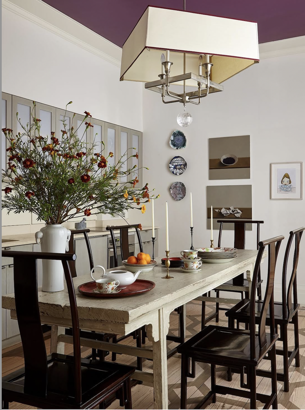 Accents of black for fixtures and dining chairs